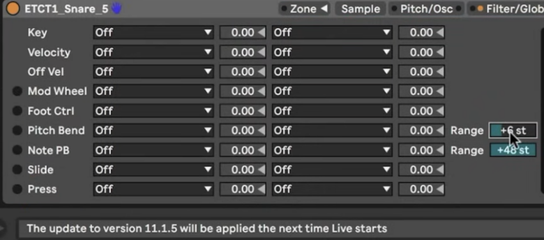 例えばAbleton Liveのサンプラーでは「Pitch Bend」の項目があり、ここの数値をオートメーションで変えることでとてもなめらかに音程を変化させることができます。