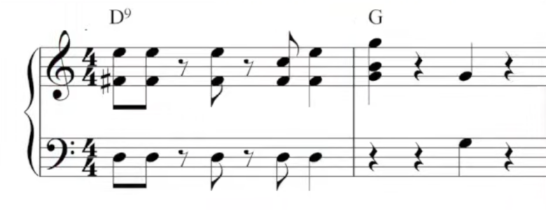 Vコードに対するセカンダリードミナントの例:スーパーマリオブラザーズ「メインテーマ」