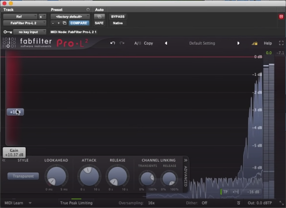 まずはFabfilter社「Pro-L2」を使って、リミッターの動きを解説します。