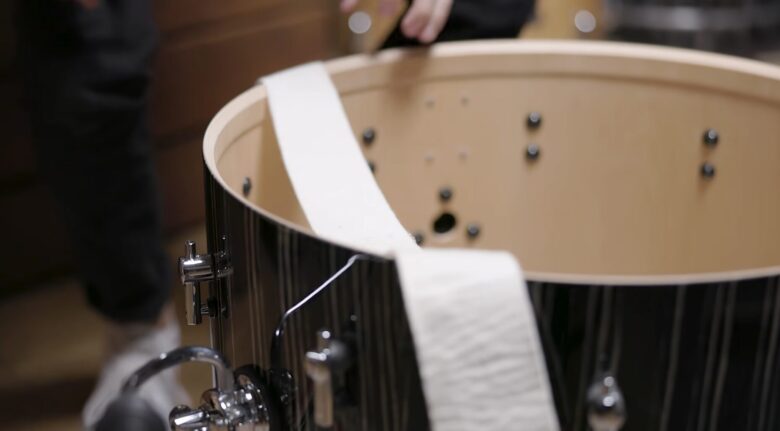 バスドラムでよく見かけるのが、バスドラムの中に毛布やマフラー、EQパッドを入れているパターンです。