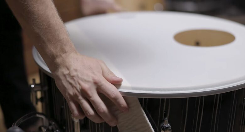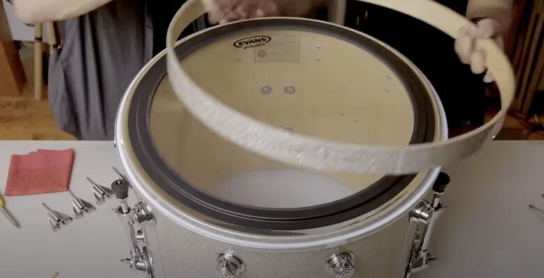 また、フェルト製のストラップをドラムヘッドの下に挟む方法もあります。