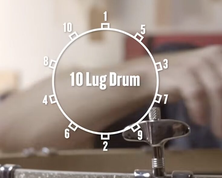 バスドラムは基本的にすべてのボルトが同じ強さで均等に絞められていることが重要なので、バラつきが出ないよう、対角線上にあるボルトを同じ強さで回すのがポイントです。