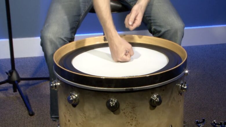 バスドラムやスネアのヘッドを新品に変えるとき、「ヘッドをセットした後にヘッドの中心を手で押して伸ばす」というテクニックが使われることがあります。