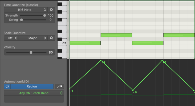 MIDIで打ち込んだ時にピッチベンドのオートメーションを書いたり、MIDIキーボードについているモジュレーションホイールを使って音を上げ下げすることがあるでしょう。