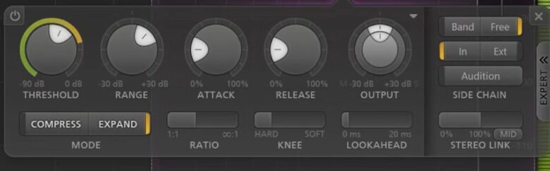EXPANDに設定すると、コンプレッサーではなくエキスパンダーの機能に切り替わります。