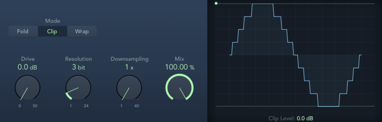 試しにLogic Proのビットクラッシャーを使って、ビット深度を8bitから2bitに下げた例を聞いてみましょう↓